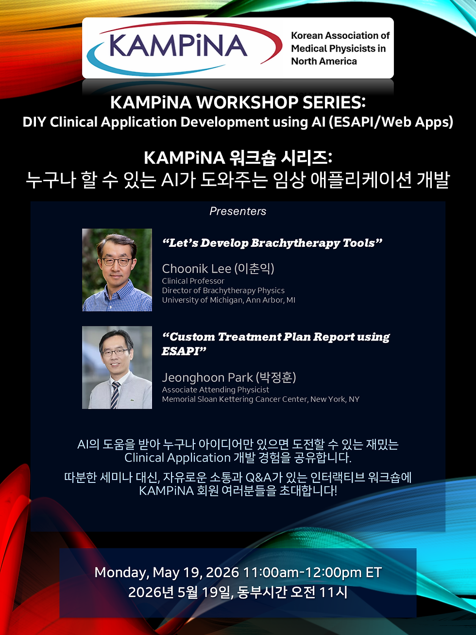 Please join us for KAMPiNA Workshop #1 of 2026, which will be held on Tuesday, May 19, from 11:00 AM to 12:00 PM (ET).